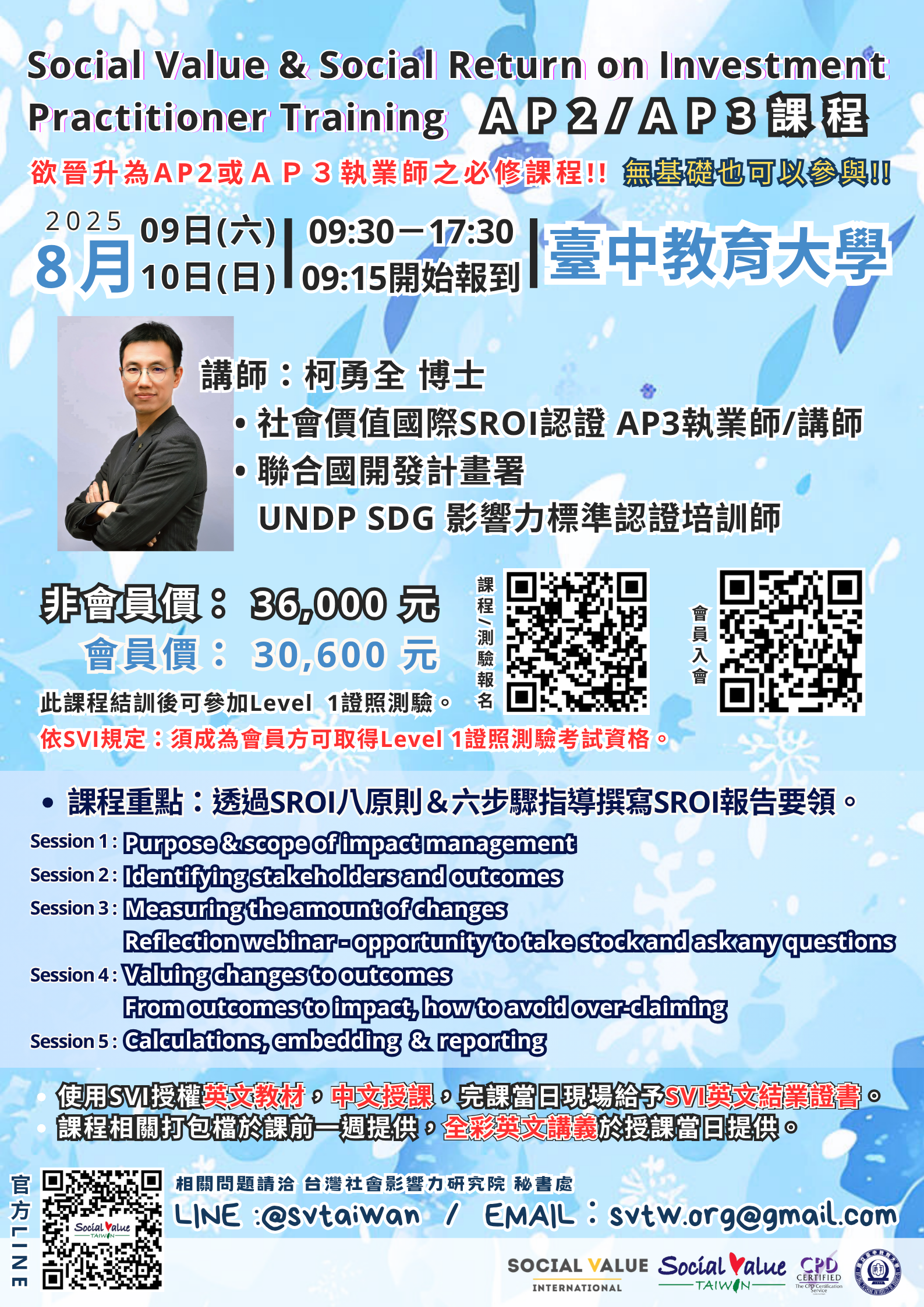 這個夏天,跟著柯勇全博士一起透過SROI八大原則、六大步驟,進一步瞭解撰寫SROI報告要領📖