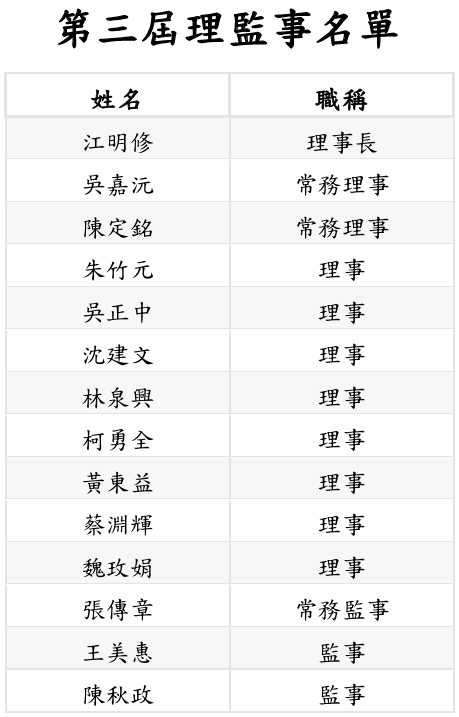 第四屆理監事名單