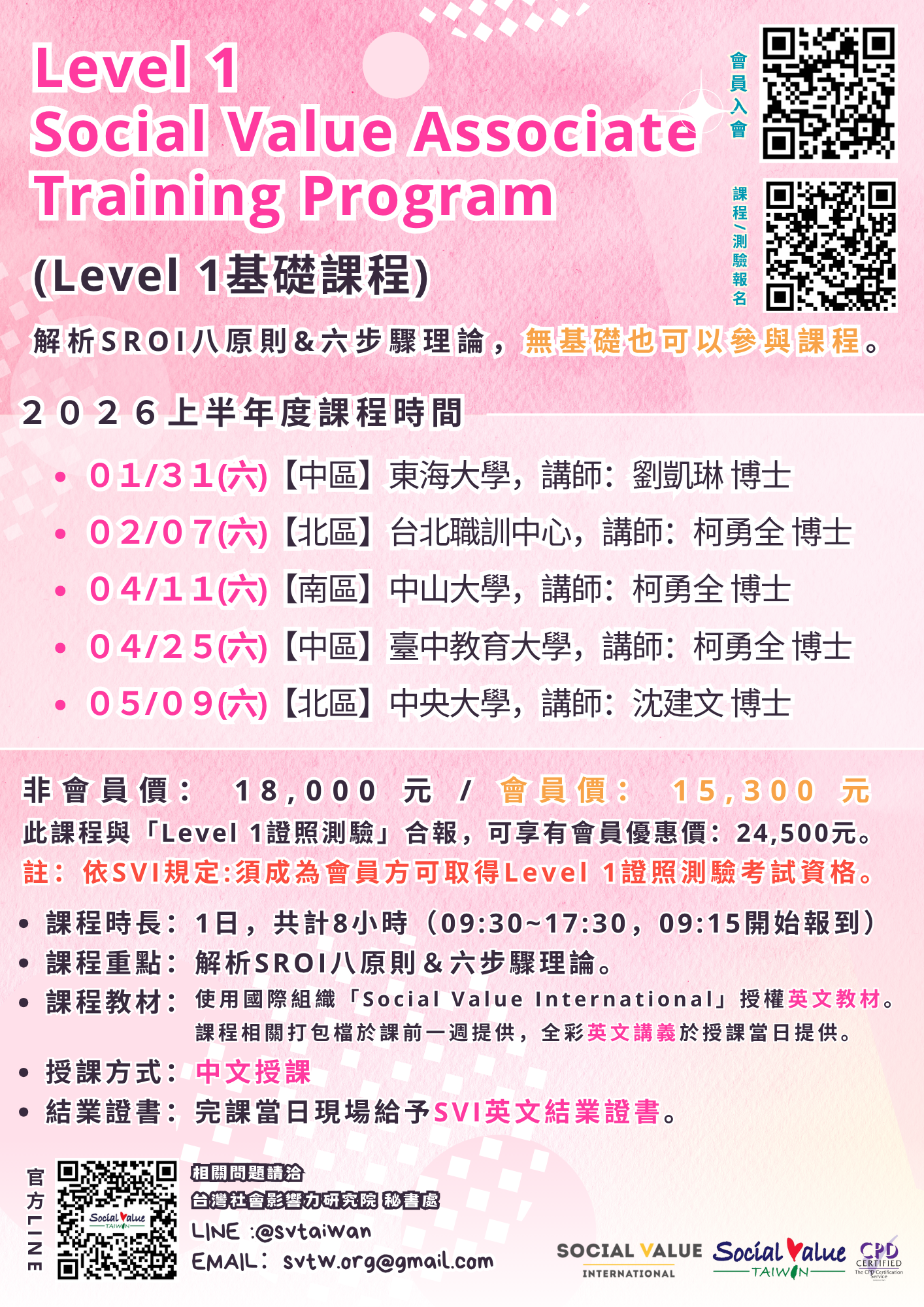Level 1 Social Value Associate Training Program(Level 1基礎課程)
